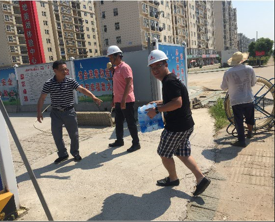 時下正值三伏天,暑氣逼人,持續(xù)高溫給施工現(xiàn)場一線的員工帶來了嚴(yán)峻的考驗(yàn),為確保安全生產(chǎn)以及一線人員的人身安全和身體健康,公司總經(jīng)理徐遠(yuǎn)征、副總經(jīng)理徐家富領(lǐng)導(dǎo)班子及工程管理部和項(xiàng)目經(jīng)理們組成慰問組前往各施工現(xiàn)場精心開展“情系一線,夏送清涼”的慰問活動,深入到公司污水泵站項(xiàng)目部、盟盛項(xiàng)目部、外環(huán)路、常貴路、常貴南路項(xiàng)目部、仟島項(xiàng)目部、南湖五期項(xiàng)目部、世茂項(xiàng)目部等施工現(xiàn)場,為奮戰(zhàn)在一線的員工送去了防暑降溫用品,把清涼送到員工們的心坎上。