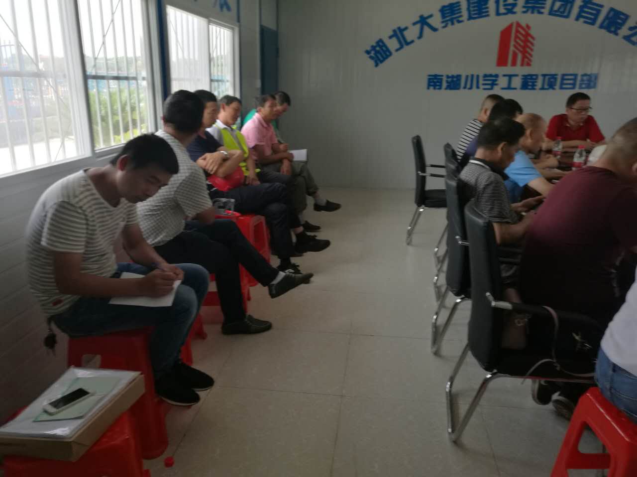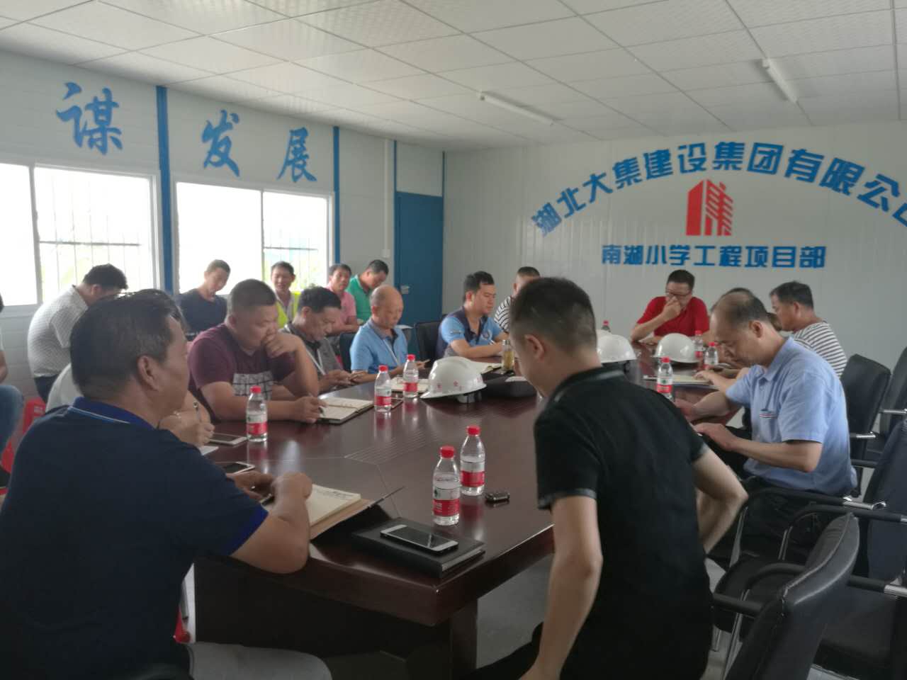 會議開始, 由南湖小學(xué)項(xiàng)目施工員介紹了該項(xiàng)目的主要情況及進(jìn)度,并表達(dá)了南湖小學(xué)項(xiàng)目創(chuàng)杯爭優(yōu)的決心,確保楚天杯,爭創(chuàng)魯班獎,并對施工工藝細(xì)節(jié)和各個操作班組制定了具體規(guī)范和標(biāo)準(zhǔn)。