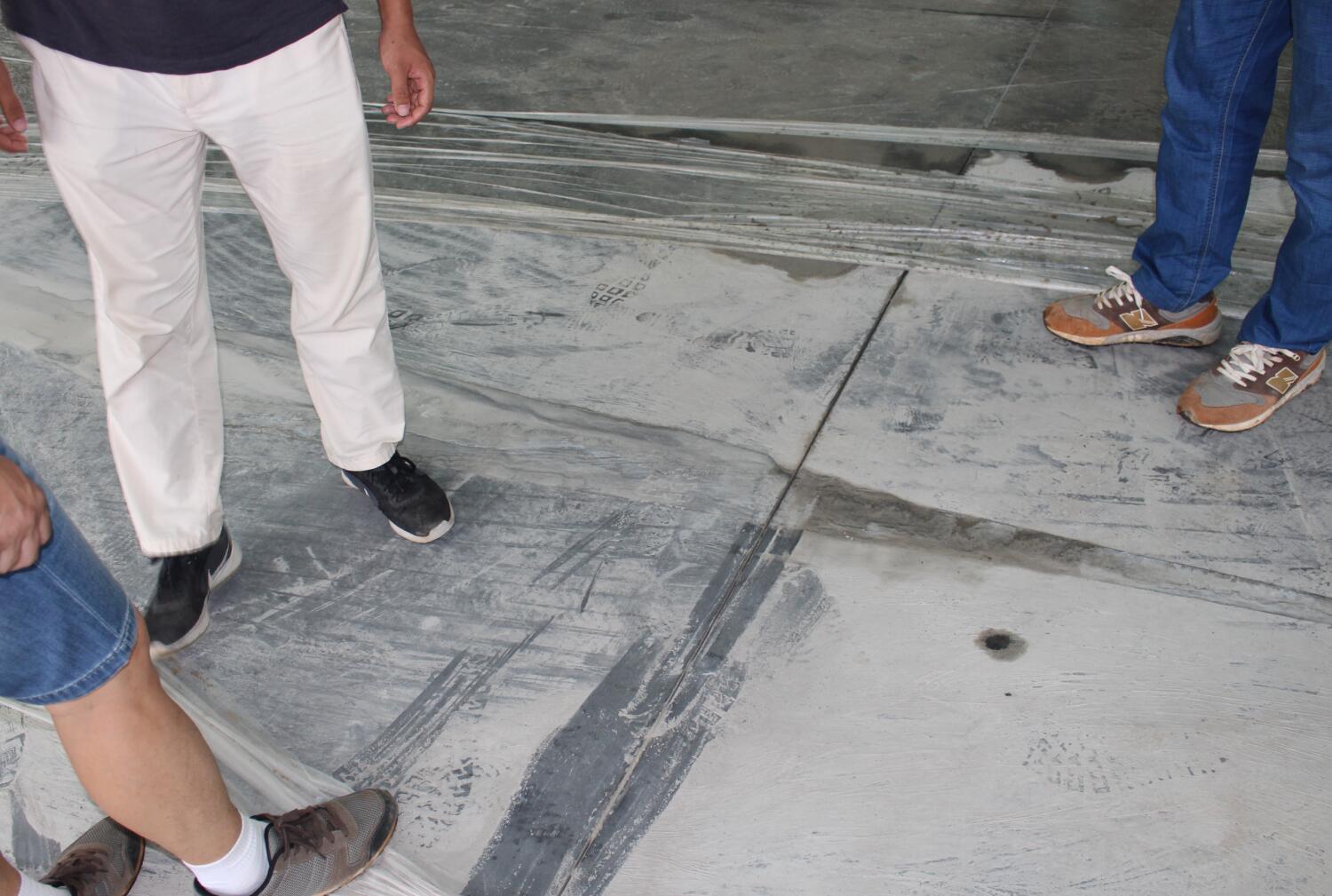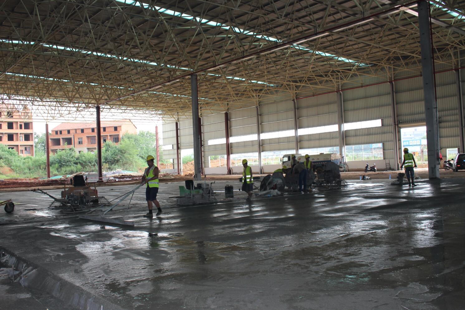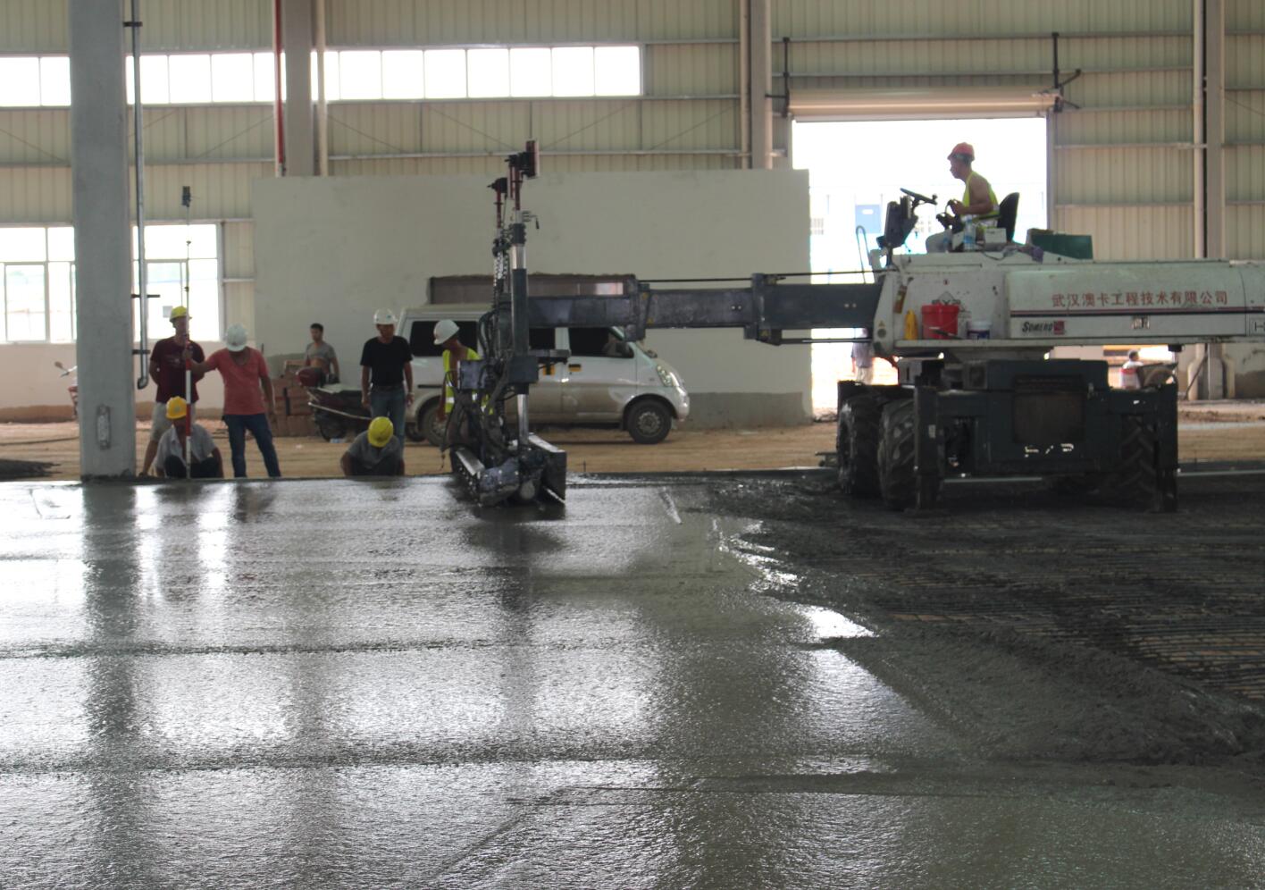億和中建鋼構(gòu)項(xiàng)目率先在地平混凝土現(xiàn)場(chǎng)引進(jìn)激光振坪儀和磨光機(jī),不僅在效率上大大縮短了施工時(shí)間,降低了人工成本,更是在效果上達(dá)到了比人工更為精準(zhǔn)的技藝——混凝土的平整度、密實(shí)度、觀感度以及面層金剛砂顆粒分布度優(yōu)良,高低差控制在3~4mm。