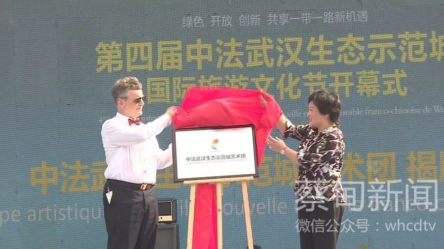 蔡甸區(qū)長、中法武漢生態(tài)示范城管委會第一副主任彭巧娣與法國駐漢總領(lǐng)事貴永華為“中法武漢生態(tài)示范城藝術(shù)團”揭牌。