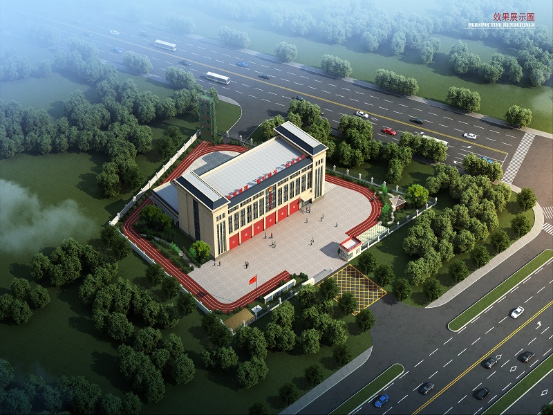 大集消防站項目位于蔡甸區(qū)大集街知音湖大道與天鵝湖大道交叉口西南角,總建筑面積3848.62平方米,平行知音湖大道布置1棟4層業(yè)務(wù)大樓,南端垂直業(yè)務(wù)大樓附建1棟1層食堂,另外配套有訓(xùn)練塔、門房等輔助設(shè)施。業(yè)務(wù)大樓和食堂外側(cè)為環(huán)形消防車道(兼作訓(xùn)練跑道),項目分別朝向知音湖大道和天鵝湖大道開設(shè)主、次出入口。