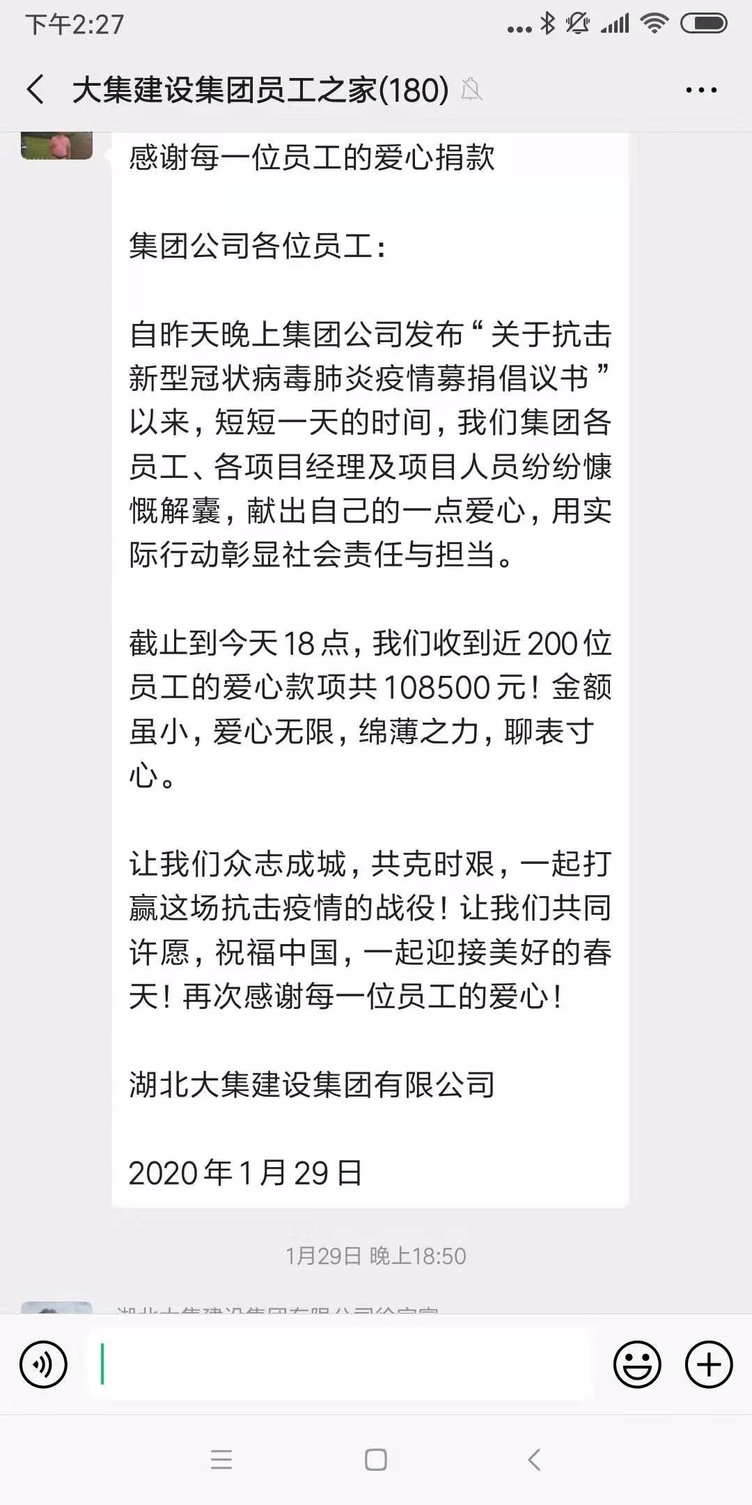 1、全體員工支援疫情防控助力,短短一天時(shí)間捐款108500元