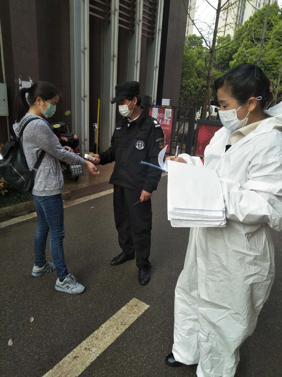 即使沒有隔離衣,沒有防護(hù)服,只有一只最普通的口罩,但只要一個(gè)通知,所有的物業(yè)人員——保潔員、保安員、維修員、客服員,不分崗位,都義無(wú)反顧地投入到戰(zhàn)斗第一線。