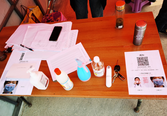 出入口安排專(zhuān)員進(jìn)行信息登記、測(cè)溫、消毒