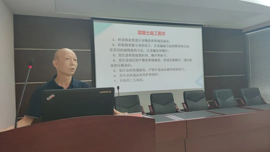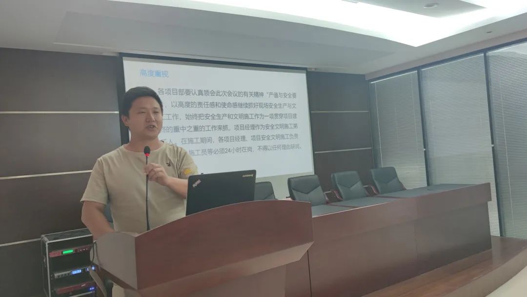 緊接著,工程部安全主管秦春波表明安全生產(chǎn)的重要性并進(jìn)行了詳細(xì)說明,提出了安全第一、強(qiáng)化意識、教育培訓(xùn)、預(yù)防為主、防治結(jié)合的安全施工理念,著重講述細(xì)微的安全隱患,讓各位項(xiàng)目工作人員引起重視。
