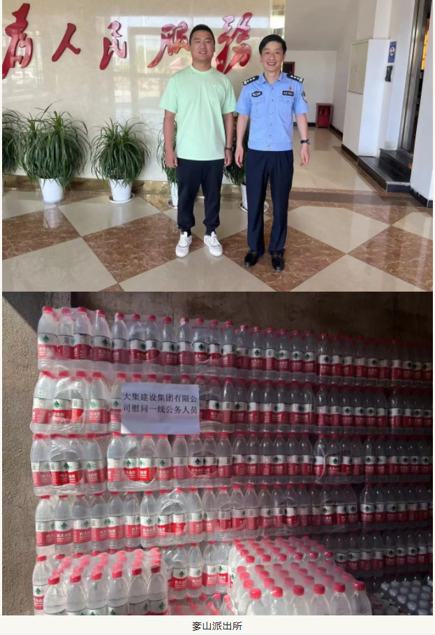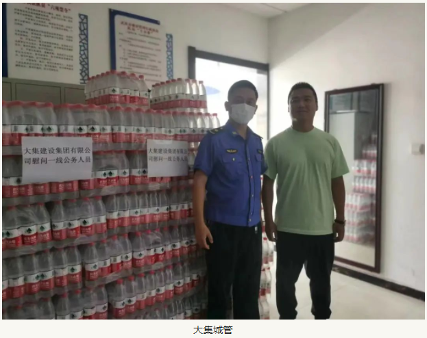 活動(dòng)中,湖北大集建設(shè)集團(tuán)分別向大集城管、大集派出所、大集交通隊(duì)、奓山派出所和奓山交通隊(duì)贈(zèng)送了100箱礦泉水和20箱紅茶,并表達(dá)了對(duì)一線民警、交警和城管人員在高溫下堅(jiān)守崗位的衷心感謝!