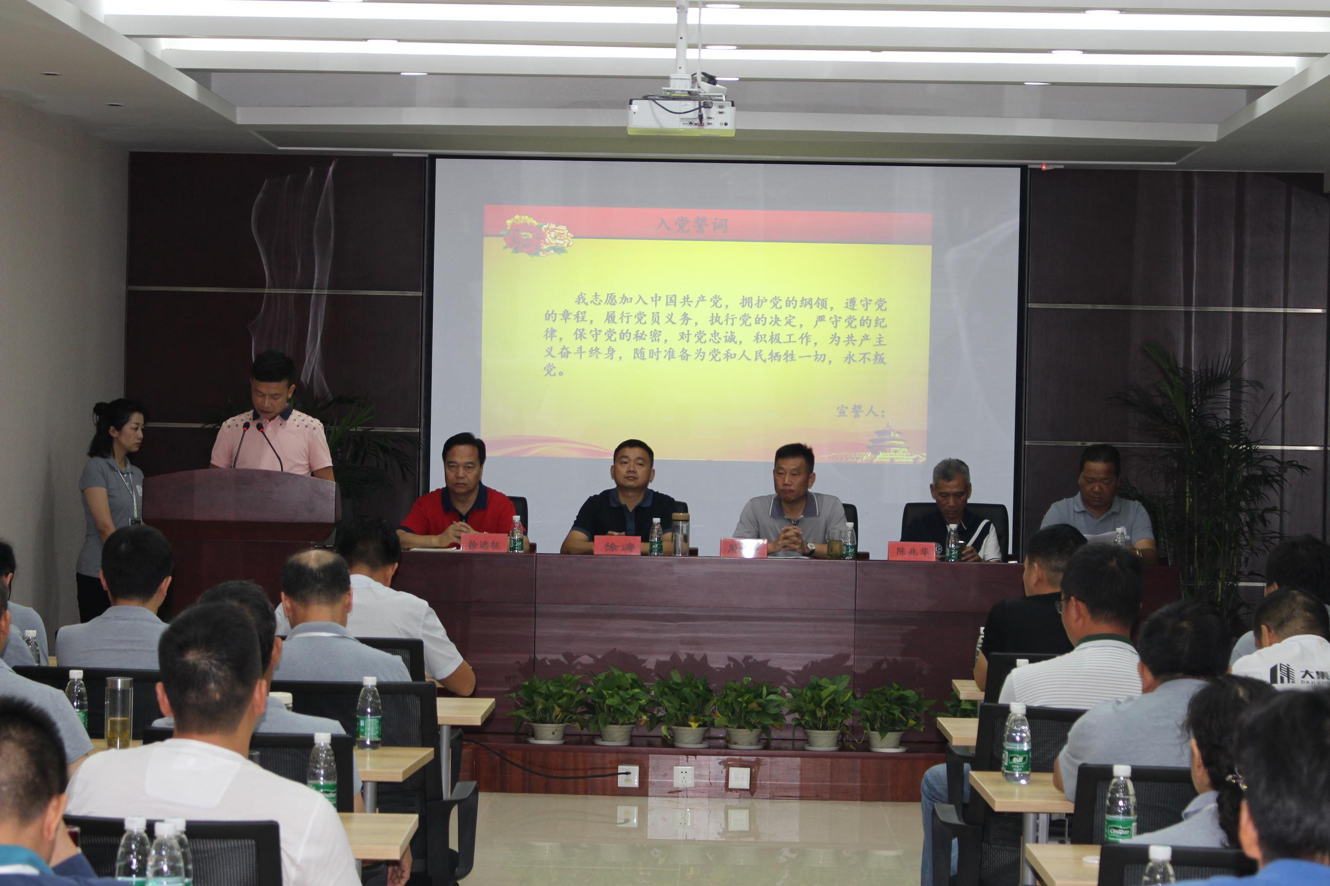 在慷慨激昂的大合唱《沒有共產(chǎn)黨就沒有新中國》中,會(huì)議拉開了序幕,熱血沸騰的歌聲結(jié)束后,由集團(tuán)黨委副書記徐遠(yuǎn)征同志帶領(lǐng)新黨員做入黨宣誓,老黨員重溫入黨誓詞。