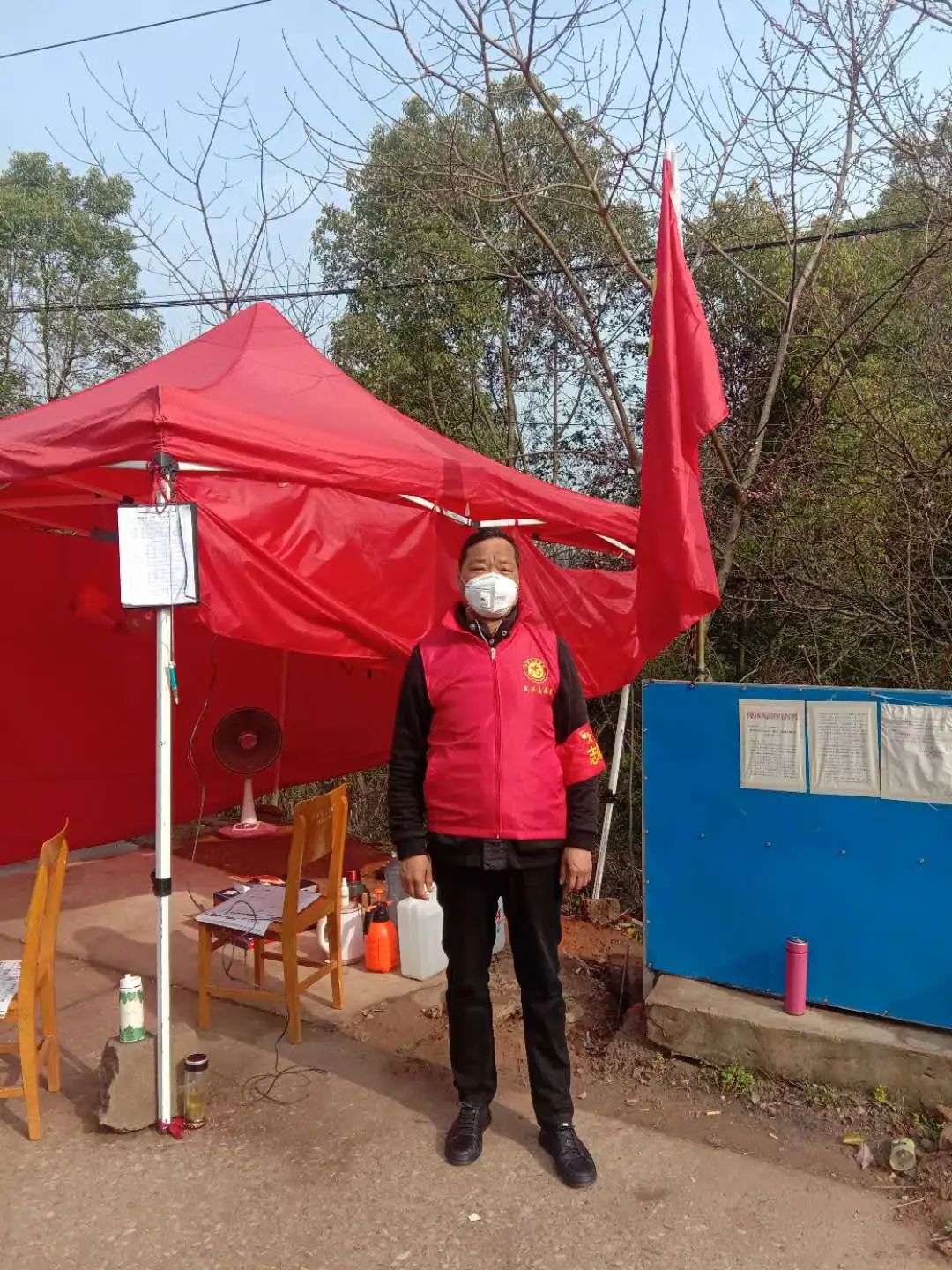 一個(gè)紅馬甲,一個(gè)紅袖章,一個(gè)口罩,57歲的集團(tuán)公司副總經(jīng)理徐家富作為志愿者已經(jīng)在這個(gè)平凡的小卡點(diǎn)堅(jiān)持了許多天。在這里,他也與武漢市數(shù)萬(wàn)名志愿者一樣,做著平凡但重要的工作,檢查進(jìn)出人員、車(chē)輛的通行手續(xù),測(cè)量體溫,配合村里分發(fā)搬運(yùn)物資,為百姓搭建起安全的防護(hù)通道和物資運(yùn)送通道。簡(jiǎn)陋的卡點(diǎn)帳篷里除了消毒防護(hù)用品外,取暖的器材只有一個(gè)電烤扇,而武漢的氣溫僅在這一周,上下跳躍的平均溫差就超過(guò)十幾度,而這一切距離他剛剛做過(guò)的膽部大型手術(shù)僅僅過(guò)去了半年。