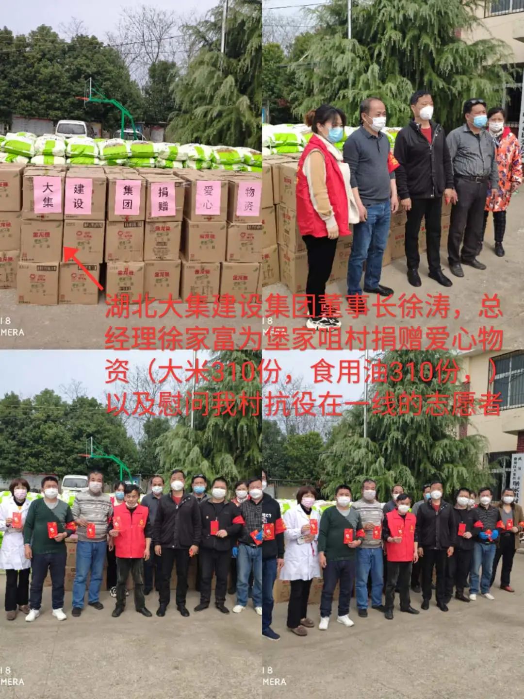 徐總代表集團(tuán)慰問(wèn)一線志愿者,代表集團(tuán)向堡家嘴村每家每戶(hù)捐贈(zèng)50斤大米、5升油,物資累計(jì)價(jià)值12萬(wàn)元
