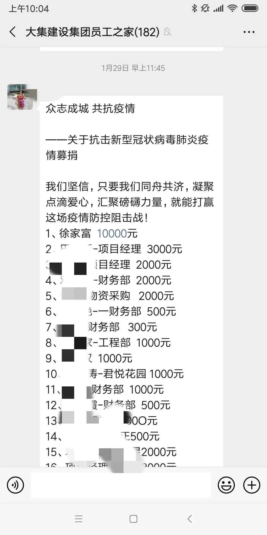 徐總親自動(dòng)員全體員工共同抗疫,并身先士卒帶頭捐款1萬(wàn)元