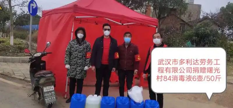 2、疫情形勢嚴峻,三位周總想法設法籌備40件84消毒液、兩大件酒精捐給田家堡村,采買300斤84消毒液捐贈給曙光村,用于支援抗疫工作;