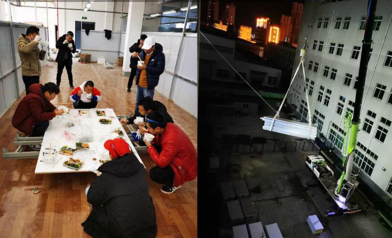 張笠說,方艙建設期間他學到了很多,更是看到了兩個人,一個是董事長,所有細節(jié)親力親為,現(xiàn)場作業(yè)面一天總要轉好幾遍,他都親自動手搬運,積極主動帶領大家一路向前,吃飯時也與大家一起因陋就簡,席地而坐,把奉獻精神做到了極致;另一個是周勝書周總,他的責任感值得大家學習,在最累的時候,大家還會歇一下,可周總總是一個人沖在前面,最早一個來,最后一個走,包括材料組織,購買,搬運,所有人的生活,現(xiàn)場的衛(wèi)生,所有收尾工作等等,所有的細節(jié)都考慮的十分全面,周總是真的把責任感做到極致的人!同時,他也很感激團隊中每一個人,因為工人業(yè)務不熟練,很多材料又難以采買,團隊中負責采購的周鋒要跑遍很多市場才能采購到足夠的材料,真的非常辛苦,但好在最終,所有人的積極配合和共同努力讓任務得以圓滿完成,他說,那一刻他自己都不敢相信,真的只剩下激動!所以這場方艙建設,對他來說收獲更多,因為這場經歷他有了更多的責任感和奉獻精神,也親眼見證了團結的力量!
