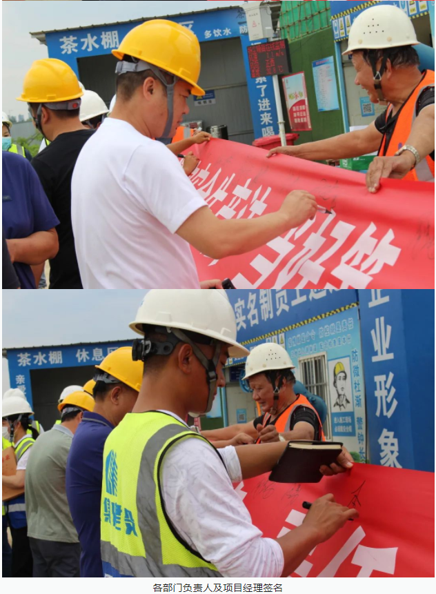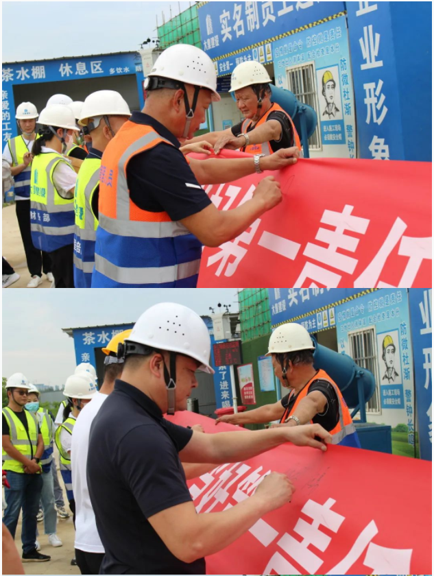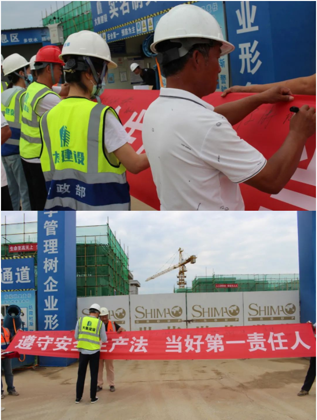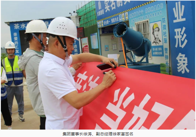 活動開始,集團董事長徐濤、副總經理徐家富及各部門負責人、各項目經理率先在“遵守安全生產法,當好第一責任人”條幅上鄭重簽名,寫下對肩負安全生產責任的承諾,隨后各項目施工員、安全員紛紛在條幅上寫下自己的名字,表達對做好安全生產相關工作的信心和決心。