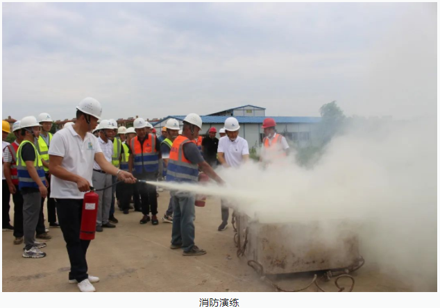接下來,進入消防演練環(huán)節(jié)。集團公司工程部安全主管秦春波向全體人員詳細講解了滅火器的正確使用方法及在滅火過程中需要注意的事項,在實操訓練過程中,大家拿起滅火器,對準火源根部,按照使用步驟,一看二拔三壓四噴進行了實際操作體驗,迅速滅掉了現場模擬的著火點。